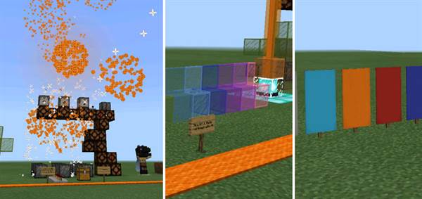 Poles! The blocks you see here are single iron and glass blocks. And on the very right (not the banners) you can see transparent ice.