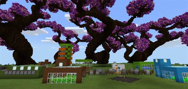 The surrounding environment is almost more interesting than the actual redstone creations. It’s like a fantasy world with huge trees stretching up into the sky.