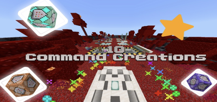 Welcome to 10 command creations. This world has 10 cool and simple command creations that will blow your mind! These command creations range from Easy, Medium, to hard. Some of the creations uses advanced commands, so hopefully you can learn something new from this world! I will say most of these command creations are pretty easy, so feel free to try them on your worlds!
