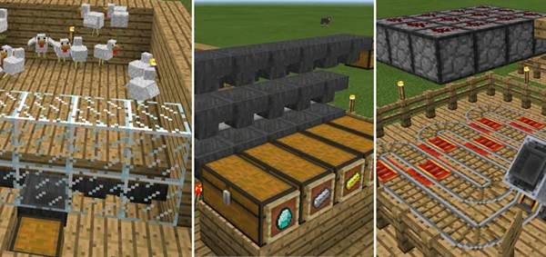 This is a fully automatic egg farm. Place a bunch of chickens inside the machine and then wait for them to drop eggs. Underneath the structure there are a bunch of hoppers which take the dropped eggs and funnel them to the chest.
