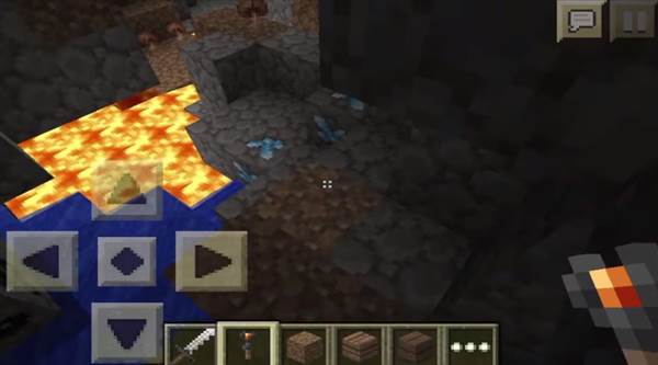 Make your way down the hole until you see some lava. There are lots of gold and diamonds down there even if we just show a few examples below we can guarrantee there are more.
