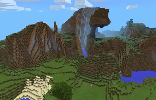 The spawn in this seed is a great open field in a grass landscape. Further ahead you will see huge mountains with extreme overhangs and spikes. Everything about this seed is huge and majestic.