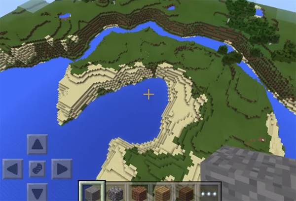 Once the seed is loaded up in-game you will notice (at least if you fly up in the sky in creative mode) that the spawn is on a huge C-shaped island with a nice-looking bay.