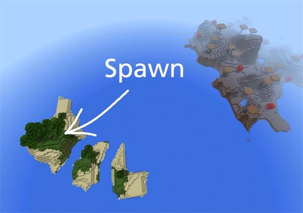 The spawn is far out in the ocean on the larger island of the little island group consisting of three. If you turn around and swim (or fly) in that direction for a while you will see the beginning of a larger mushroom island.