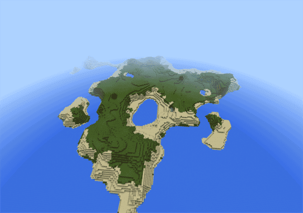 In this seed you will spawn on the center of what is a really big survival island. Surrounding the main island are a few smaller islands but besides them the surrounding area only consists of water.