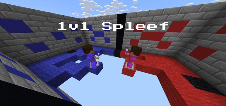 In this version of Spleef, there are two players going head to head. This map is made out of wool. Both players are given shears with efficiency II in order to break the blocks. This map is small enough for this to be a very fast-paced gamemode.
