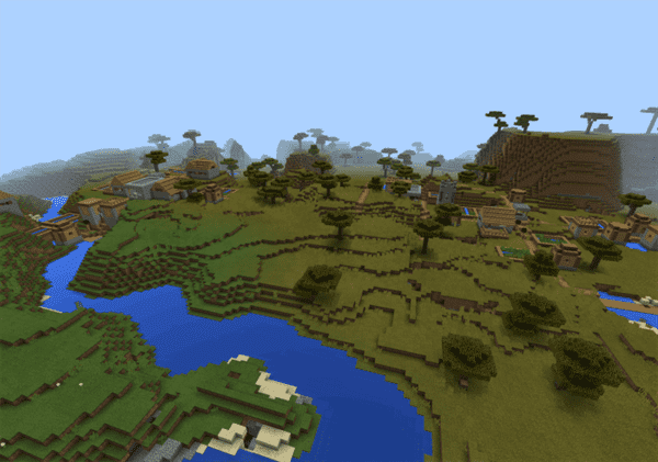 Here’s a seed where you will be able to find five villages which are all very quick and easy to find. Four of the five villages got blacksmiths with chests and all of the items combined offer a great starter kit for survival.