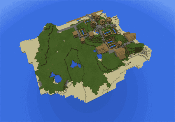 Here is a seed where you will spawn on a larger island with one village. The great thing about this village island is that the island is split up in two parts. In one part of the island you will find the populated village and on the other part you will find flat landscape where you can build your own houses. So it’s a great island if you are looking to expand upon the village with your own structures.