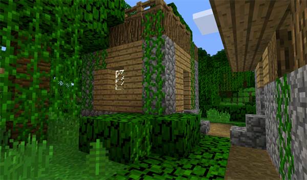 Here’s a very different village. It’s not an ordinary village because it has partly been generated in a jungle biome which causes some of the houses in the village to be covered with vines. It takes a little bit of walking to get there but it’s fairly easy to find it. We’ll let you know exactly how to get there.