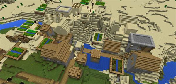 You don’t have to go far to get to the double village because you will actually spawn in the center of it. The two villages have been generated closely together which make them appear as one large village.