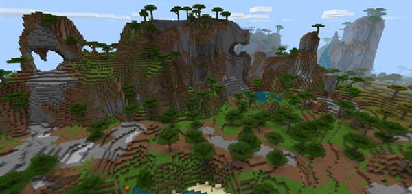 This is an extreme hills biome which has all the ingredients which usually makes it a savanna biome. It has all those savanna trees, but the biome painting is greener and in that sense it doesn’t look like normal savanna. This means it’s basically a fake savanna biome posing as a real one. However, it’s probably more likely caused by a bug in the system than by an intelligent pig AI gone rogue in the world.