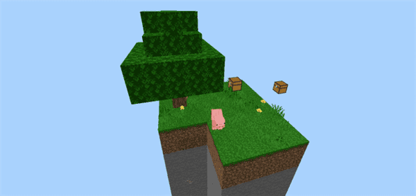 The player starts out on a skyblock island which includes only the most basic resources you’ll need to survive.
