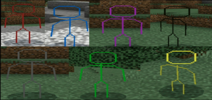 The Stickmen have 7 colors. They include magenta, yellow, black, red, blue, green, gray, so that’s all new colors and a lot of colors. I will make a version of the skin pack with new color and more. The skin pack is free to download in MCPEDL and if you want to download it for free.
