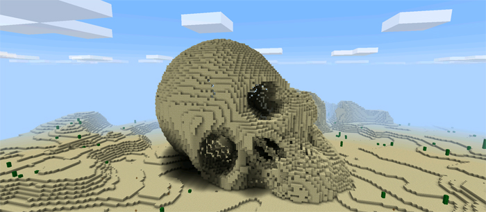 Imagine going on an adventure and then find an enormous ancient skull of a human. That’s exactly what you would come across if you were to play this map. It’s an incredibly big skull located out in the desert. It looks extremely realistic and very spooky when the night falls. It’s definitely not a place we’d recommend going to during the night as you never know what monsters might be lurking there.