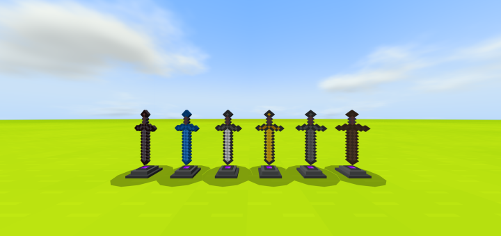 This addon adds six new animated entities to the game. These sword pedestals should only be used as decoration and should not be used as your primary sword storage because it does not keep the sword’s enchantments.