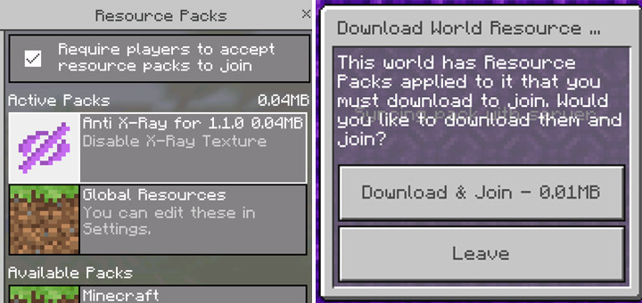 This addon is useful for Realms owners who want it better protected against players who are using X-Ray cheats or coordinates. The server protection is considered highly reliable since it has been tested with some of the most common X-Ray and coordinates addons. Hopefully some more protections (e.g. grief protection) could be added in the future.