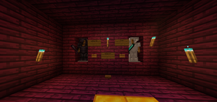 This map is an Arena PVP practice, a small arena with lots cover you can choose 2 kits: Netherite set + Netherite sword or Iron set + Iron sword. You can also practice bridging, god bridging, ninja bridging, etc.