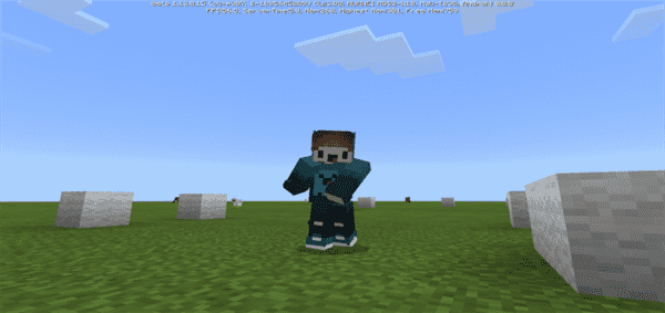 This add-on adds an animation to our Minecraft character, modifying the squatting animation by that of the famous Swish Swish dance of Katy Perry presented in a video clip of one of his songs, in which a child with bigger than normal hands and a backpack, moving the arms from side to side. In my channel I show the review of this complement. (Text translated from Spanish to English with Google Translate.)