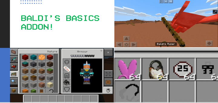 Have you ever heard of Baldi’s Basics? If you have, you are probably going to like this addon! It adds nearly everything from the game into Minecraft. It also makes Survival Mode way harder! Hope you enjoy the addon!