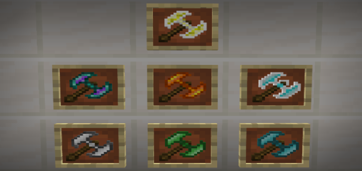 This Addon adds 7 Battleaxes to your game. Each battleaxe has atleast one ability and very high damage. Every battleaxe can be crafted in survival to help you against the creatures of darkness.