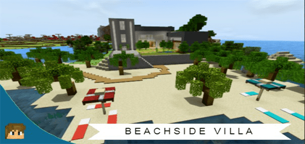 The modern Beachside Villa, now updated with “Buzzy Bee Update” blocks, features multiple rooms with different furniture in each. From bedrooms to kitchens and living areas, this house also has an underwater viewing room!