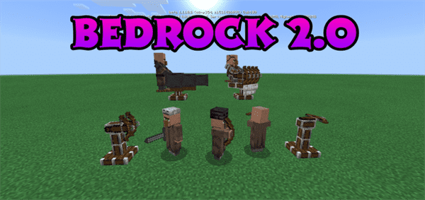 This add-on adds 18 new entities into the game including 2 new boss battles to fight and new villagers armed and ready for battle against the pillagers. The add-on also includes new ocean life and variants of the skeleton and zombie in their vice versa state in biomes. Ores and stone types were retextured to their honest drops, also to give the stone a smoother feel, it also includes the netherrack.