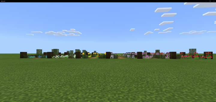 Have you ever thought that the flowers in Minecraft needed a bit of improving? Did you ever feel that their should be more? Well this texture pack can help you with that! It makes most of the flowers and mushrooms have more in each block, so its more useful for building! It also adds flowers that resemble the double tall flowers!