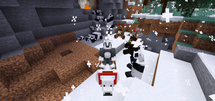 - Pandas can eat more items now and tempted with them,also can drink now!(babies can be tempted and grow only with apple, bamboo, cookie). Full list of items: [apple, bamboo, bread, cake, clownfish, cooked_fish, cooked_salmon, cookie, fish, honey_bottle, honeycomb, egg, melon, pumpkin_pie, salmon, sugar, sweet_berries, reeds(sugar_canes)]