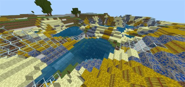 This addon replaces all of the biomes with randomly generated ones. The grass layer, dirt layer, and stone layer all have random blocks replacing them. For example, you can find a diamond biome.