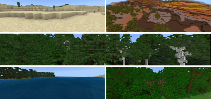 Jungle , Mesa, Mountains, ocean, desert, and forest (the tallest one)