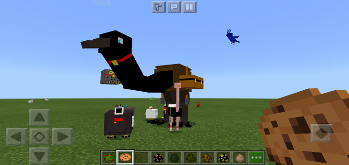 Another extinged birds, that’s looks liked an ostrich. Be careful it’s very dangerous. They’re tameable with using cakes, cookies or cocoa , but tame them fast. Rideable with using saddle.