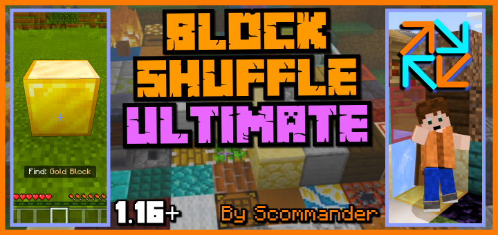 Based on the game created by GeorgeNotFound and Dream I present Block Shuffle Ultimate! You are given a random block you must find within a certain amount of time or you fail. Play alone or compete against your friends to see who is the last one standing. SIngleplayer and multiplayer compatible and works with infinite players. Change whether players get different blocks or the same, adjust the maximum time to find your block and have a ton of fun with your friends!