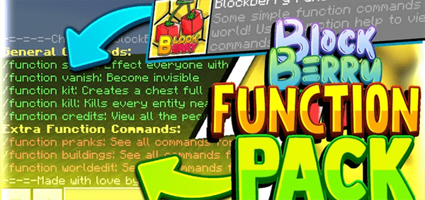 BlockBerry proudly presents a function pack! This pack includes multiple things, such as buildings, pranks, and helpful commands. We will add world edit commands to the mix soon! So be ready!!