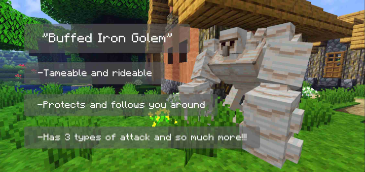 As its title, this Add-on buffed Minecraft’s Iron Golem, it adds several features to the golem, from its model down to its capabilities. New animations, various attacks, special armor and weapon, obtainable and craftable items and etc. And the best part of this Add-on, you could tame, ride, and fight alongside with this buffed golem. This Add-on is for Minecraft BETA 1.16+, and may also work on the game’s previous versions.