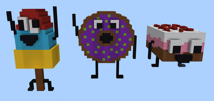 This map includes three different structures which are based on tasty desserts. Each structure is a level/game and can be started by pressing one of the buttons in the lobby. However, before starting make sure to select a class.