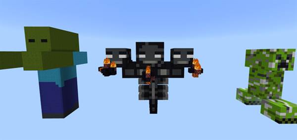 Press one of the buttons on the wall to select a level. There are three different base levels (and one bonus level) and each of them are based on a mob in-game.