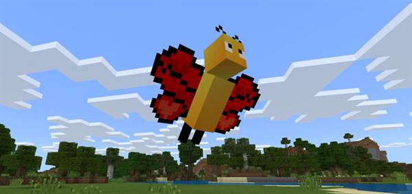 By hitting a butterfly it will instantly drop dead and drop an Elytra on the ground. For those who don’t know, the Elytra is an armor item which can be used by players to glide (or fly indefinitely if you’re in creative mode).