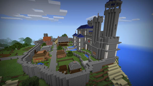 This map consists of a small town which got a surrounding wall protecting the inside. On the inside you will find several houses both homes of the ones living in the town but also some shops. The centered focus in the town is the castle which are several stories high and got a beautiful interior to explore.
