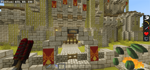 A castle with everything you need, tons of automated farms, secret dungeons, a secret base underneath with an automated storage system and mines. You will have hours of fun here. And will be able to use the portals to travel or visit the End portal located under the village that is right next to your castle.