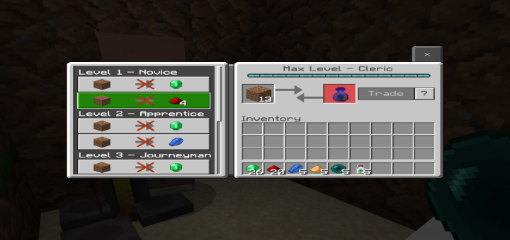 This add-on replaces expensive villagers traddes to the cheapest ones for now only 4 tradings files have been modified the add-on will keep updating to have all trading files replaced