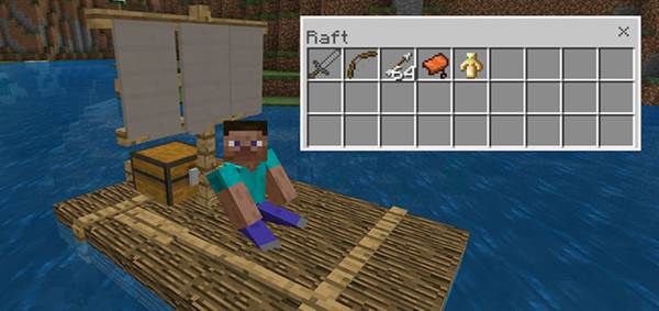 This add-on replaces all different boat types with rafts in a multitude of style and color. Each raft is equipped with a chest where you can store your items while out traveling on the open seas. The chest has 27 slots so there’s plenty of room for you on your travels. The model is neatly detailed with sails, an oar and other objects to make it as realistic looking as possible.