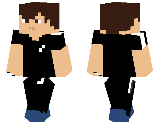 Short Brown Hair. Black and White T-shirt and Tracksuit Bottoms.