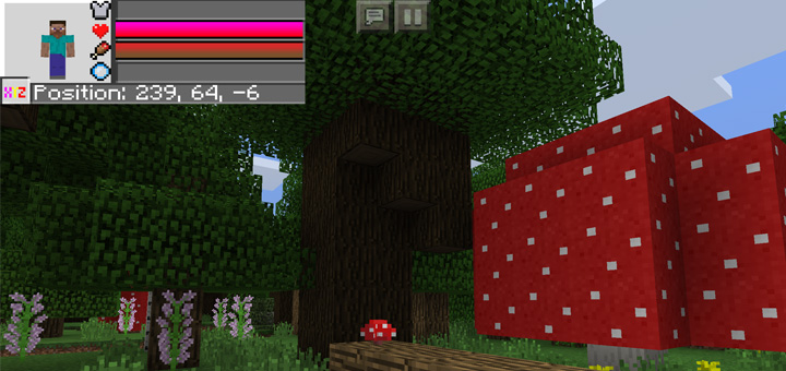 This resource pack adds a much more simplistic GUI to the game. All of the most necessary information has been compiled and positioned to be displayed in the top left corner of the screen. This information includes a player doll, a health and armor bar, hunger bar, drowning bar and X, Y, Z coordinates. It’s a great way to quick and easy access the most necessary data.