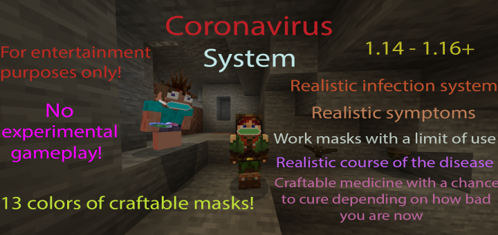 With this add-on you can catch the coronavirus from an infected bat and infect another player! Realistic Infection System, Realistic Symptoms, Working masks with usage limits, Realistic medicine with a chance to cure depending on how bad you are and much more!