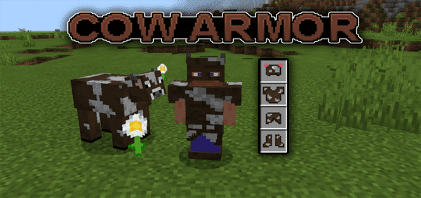 Do you find Minecraft’s leather armor ugly and useless? Now you can get disguised between cows! This addon adds amazing cow leather armor and hoe to your Minecraft Bedrock Edition.