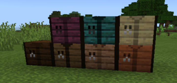 Crafting Tables + adds 7 new crafting table designs of each wood type for decoration, that means no more basic table from all wood types, each wood type has its own crafting table, they are craftable on survival with 4 of their wood type in an o shape