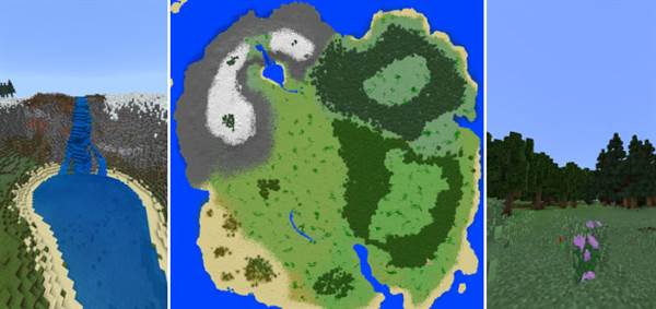 This is a custom terrain which is suited to use for survival gameplay. It features a medium sized island with plenty of different biomes and areas to explore. Some of the areas include new forest types, waterfalls, a vast beach and once you’ve spawned you will find a chest full of tools, food and armor. And if you are of the creative mind then there is also plenty of flat areas for you to build!
