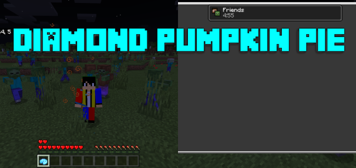 This addon adds a food called Diamond Pumpkin Pie. It’s similar to golden apple but it’s diamond and pumpkin pie. If you eat it, it gives you an effect called Friends and an extra 2 hearts. This effect makes hostiles like zombies or skeletons not attack you.