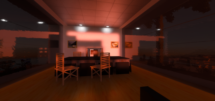 A small window demonstrating the godrays that can be created. Decorative leaf blocks added by the included behaviorpack are used here.