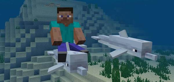 First off you need to find a dolphin. Dolphins spawn in all ocean biomes except for frozen oceans. Approach the dolphin and interact with it (similar to riding any other rideable mob) to ride it.
